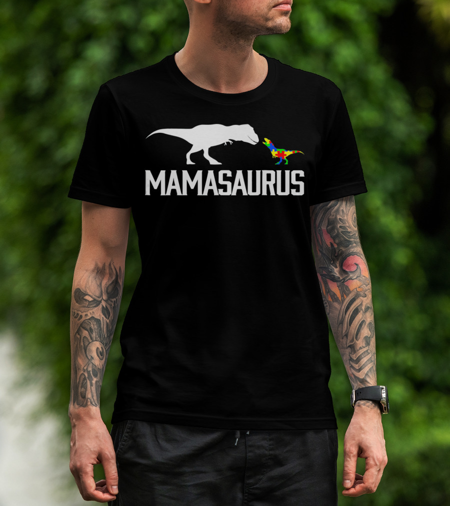 Mamasaurus Dinosaur Autism Mom Puzzle Piece T-Shirt