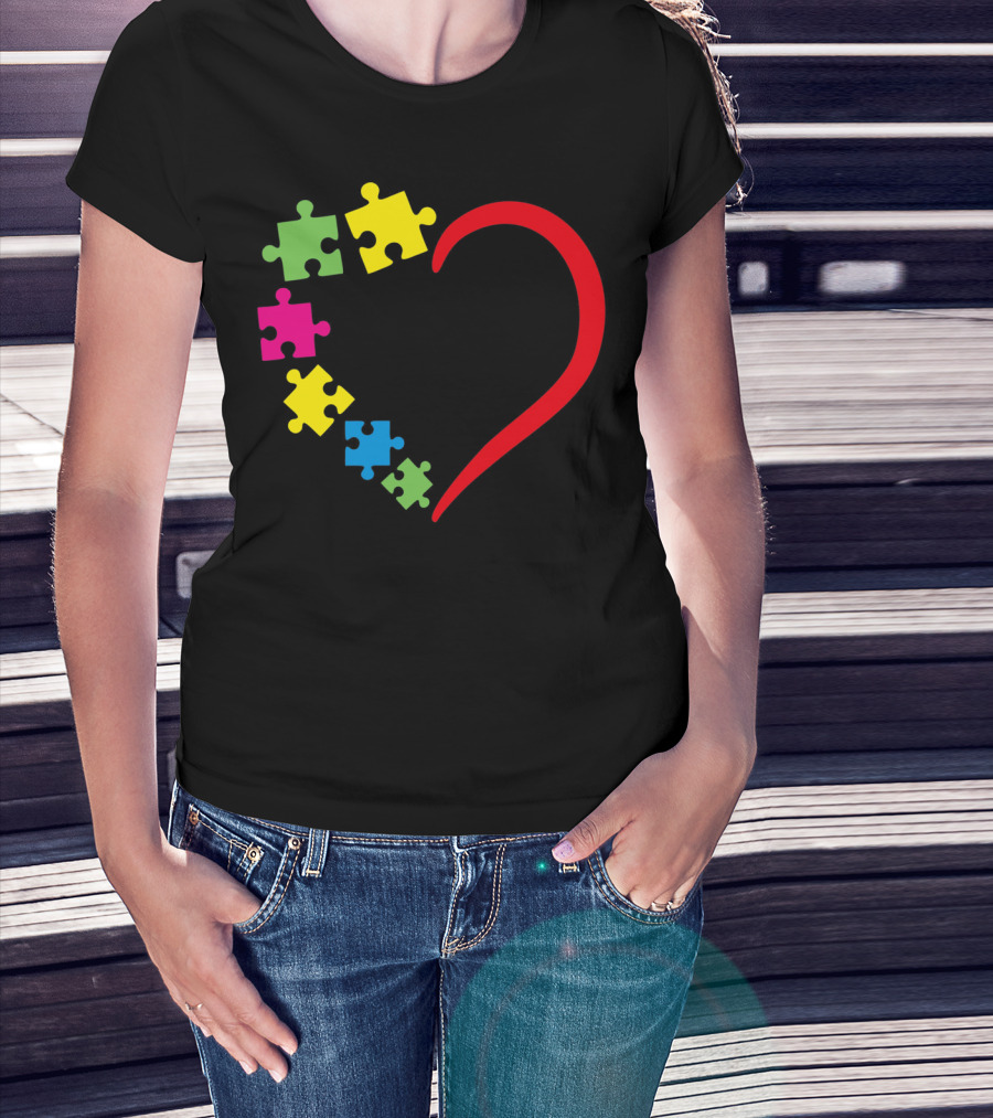 Love Ribbon Heart Puzzle Autism Awareness T-Shirt