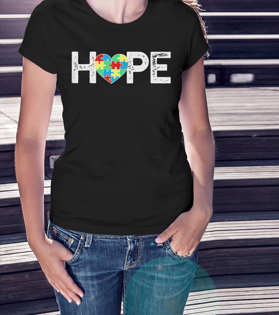 HOPE Heart With Autism Puzzle Pieces T-Shirt