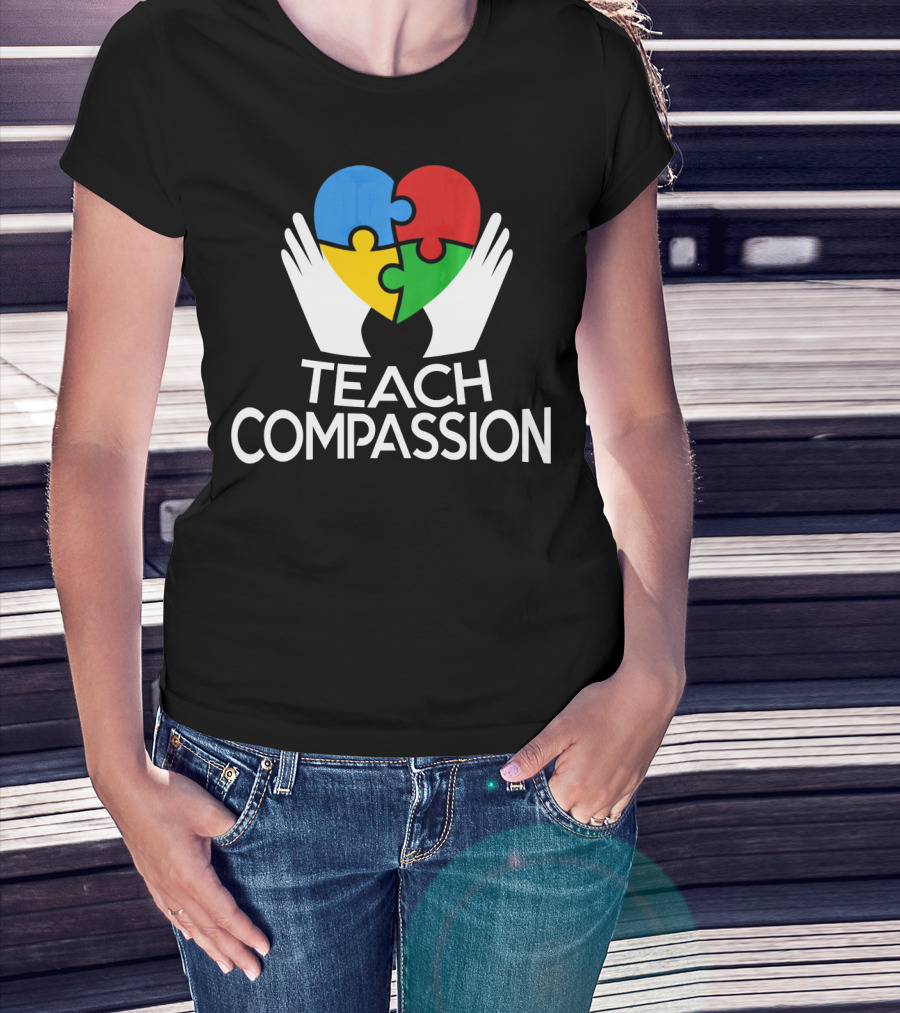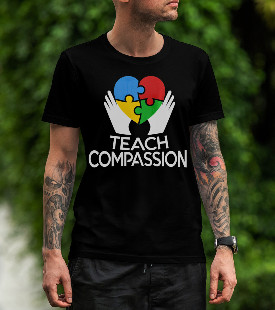 Teach Compassion Heart Puzzle Autism Awareness T-Shirt