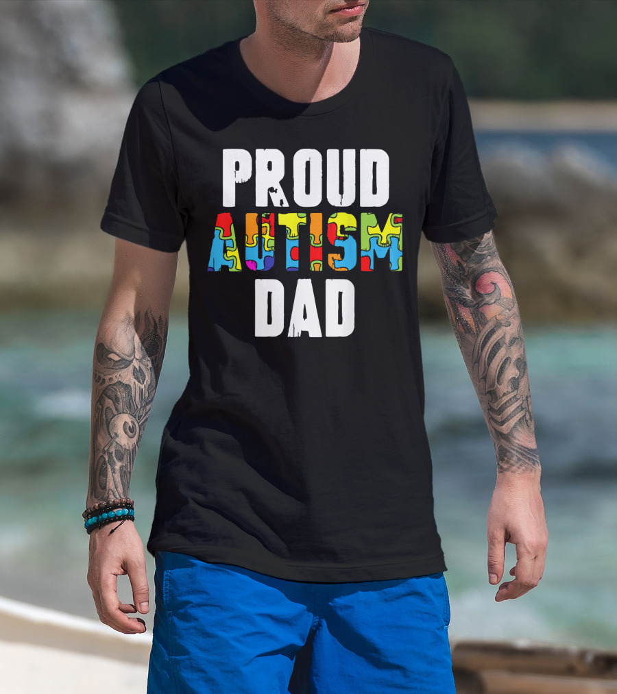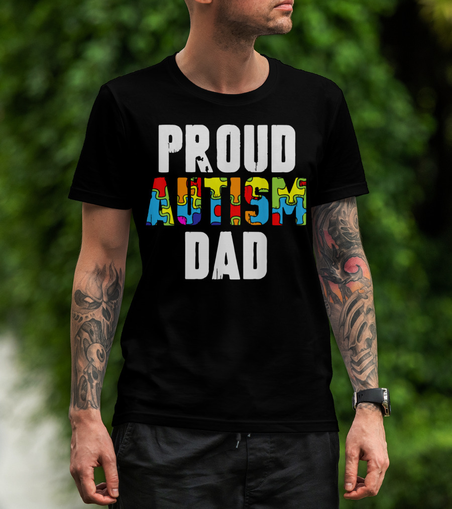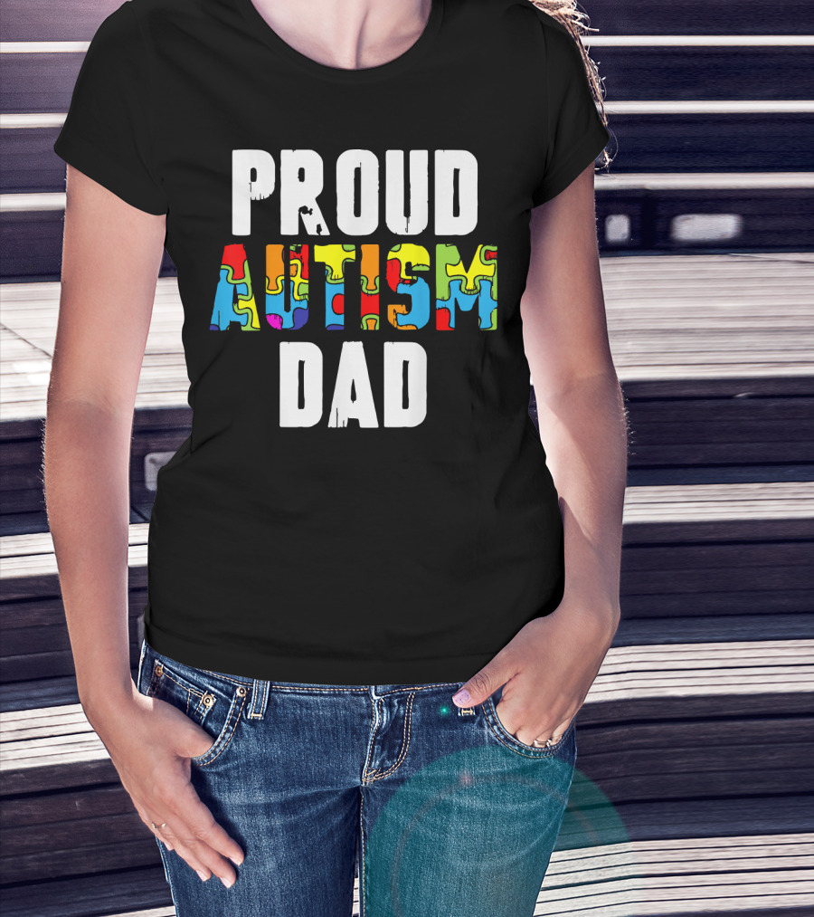 Proud Autism Dad Colorful Puzzle Piece Autism Awareness T-Shirt