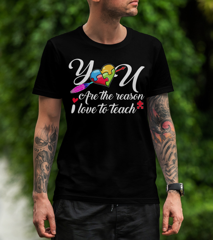 You Are The Reason I Love To Teach Autism Puzzle Heart Arrow Feathers T-Shirt