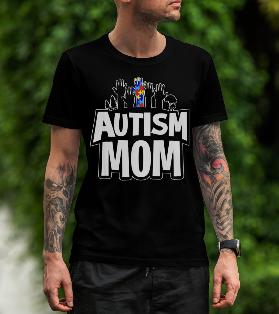 Autism Mom Awareness Puzzle Hands Forest T-Shirt