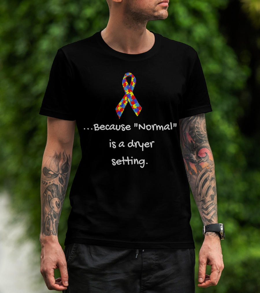 The Autism Awareness Because Normal Is a Dryer Setting Puzzle T-shirt is designed for everyday wear and a consistent fit. Fabric is pre-shrunk ring-spun cotton with durable stitching. See the size chart below for exact measurements.