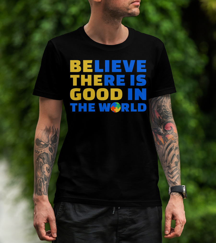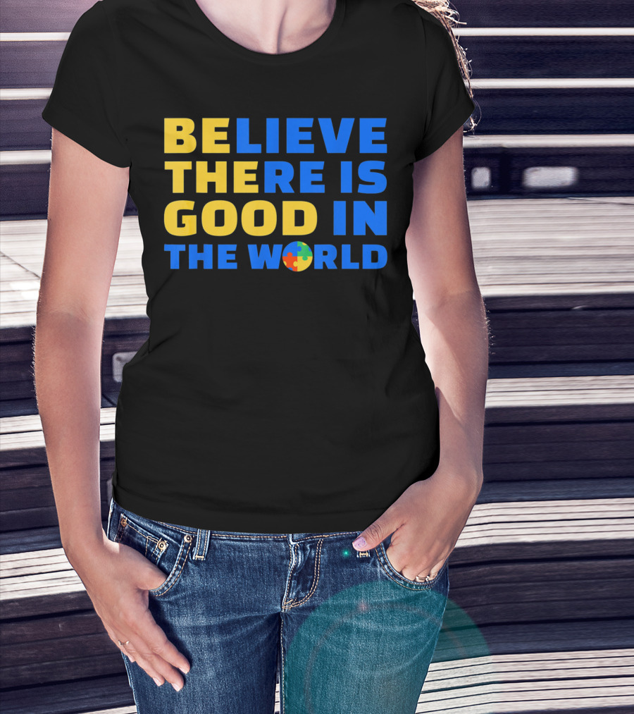 BELIEVE THERE IS GOOD IN THE WORLD Autism Awareness Puzzle Piece T-Shirt