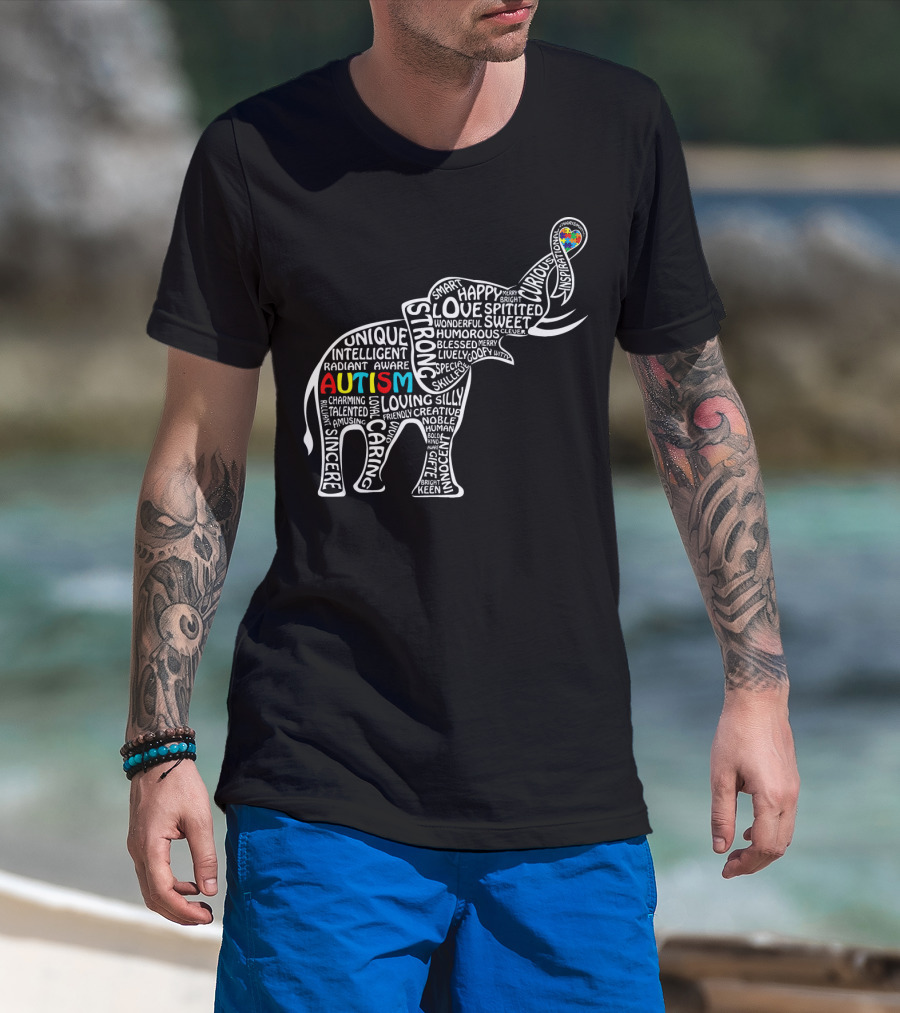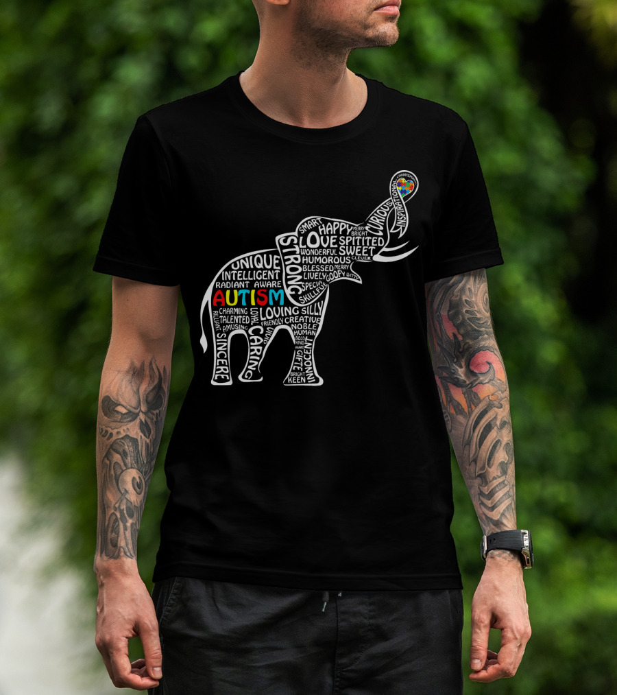 Funny Clever Autism Awareness Elephant Typography T-Shirt