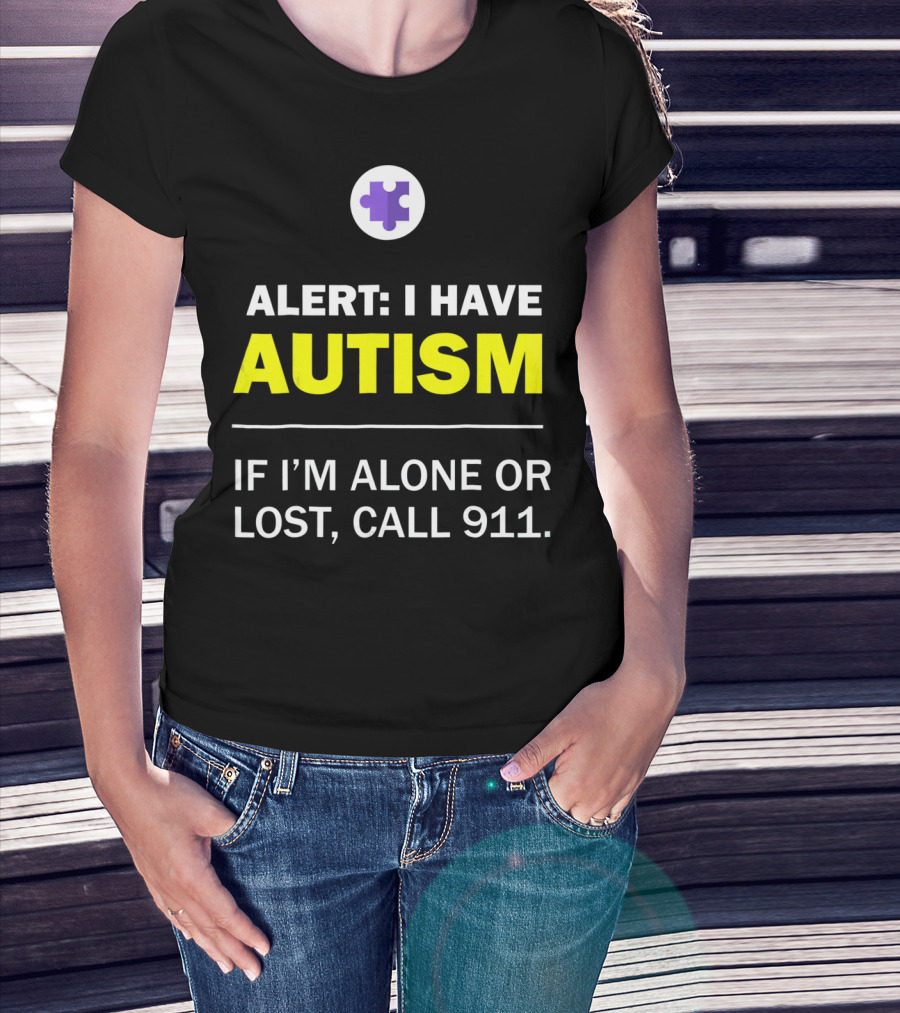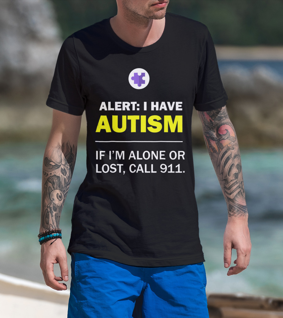 Alert: I Have Autism If I'm Alone Or Lost, Call 911 Puzzle Symbol Autism Awareness T-Shirt