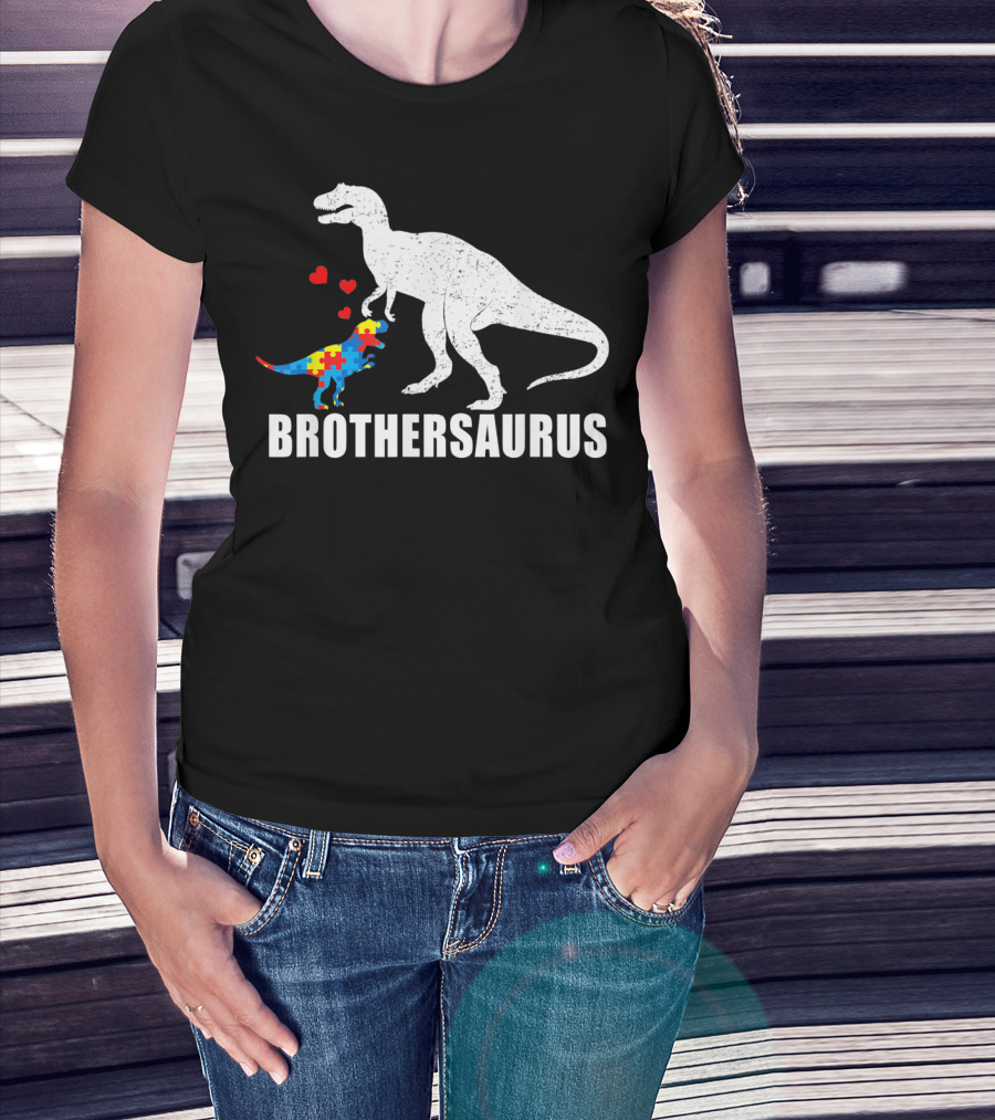 Brothersaurus Dinosaur With Puzzle Pattern For Autism Awareness T-Shirt