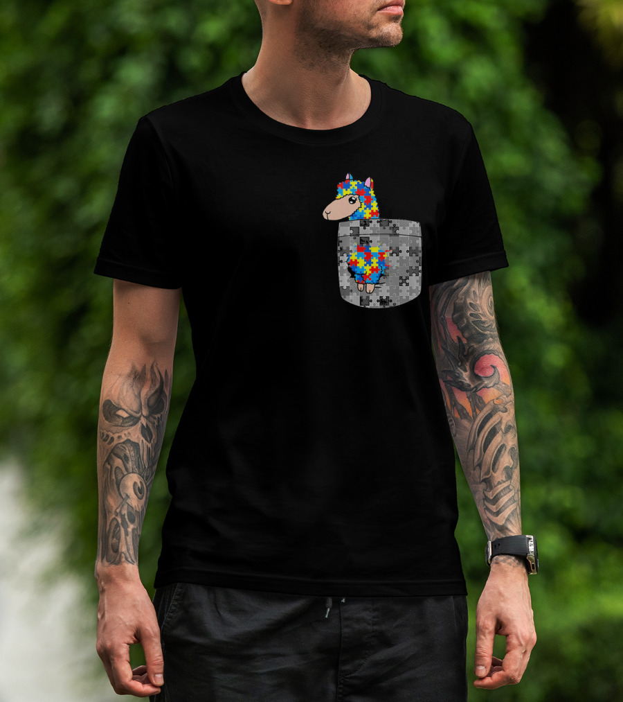 Funny Puzzle Pocket Llama Autism Awareness T-Shirt