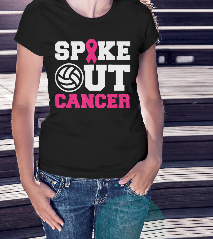 Volleyball Spike Out Cancer Pink Ribbon Breast Cancer Awareness T-Shirt