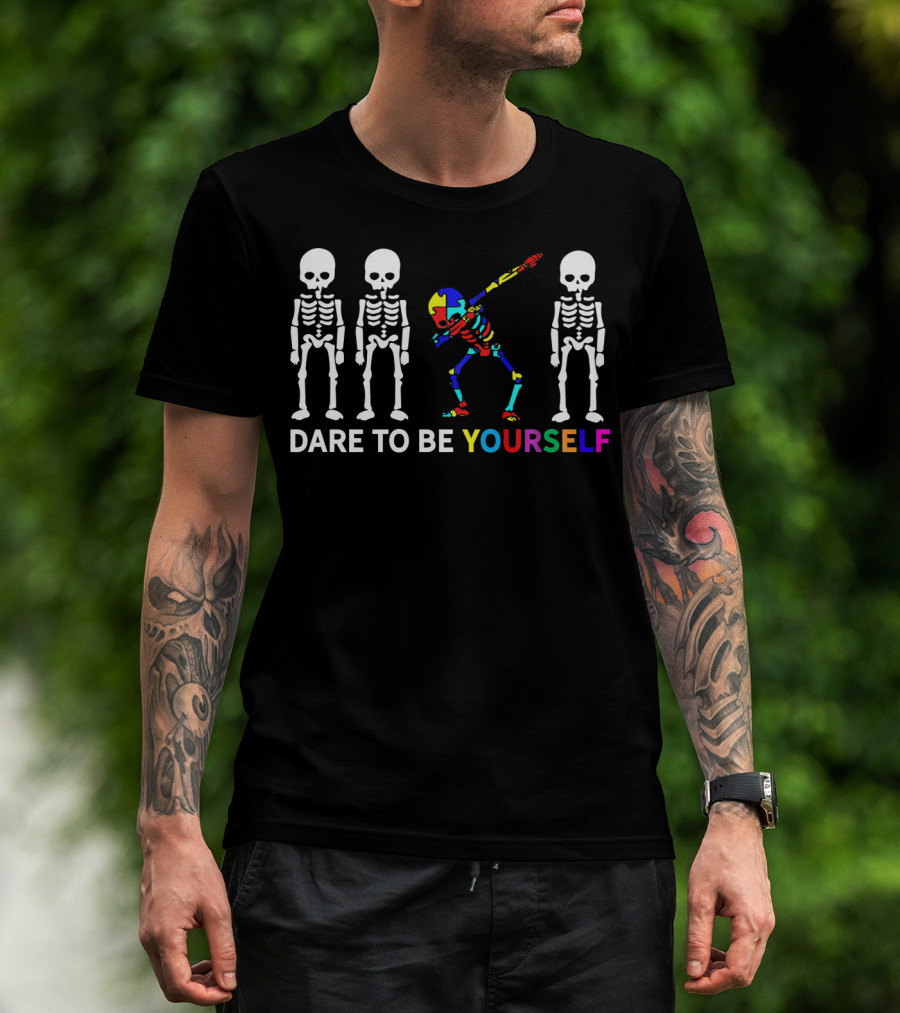 Skeleton Dabbing Dare To Be Yourself Autism Awareness T-Shirt