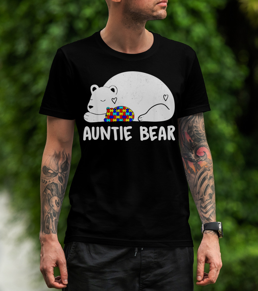 Auntie Bear Autism Awareness Puzzle Heart T-Shirt