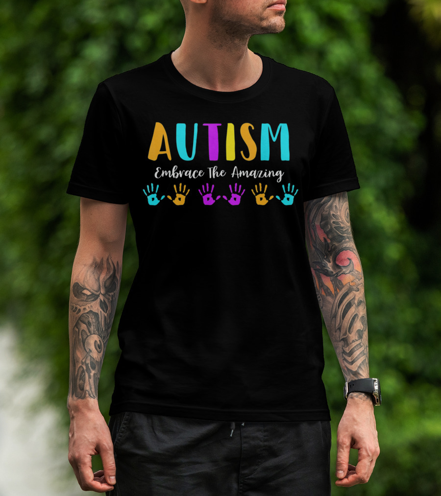 Autism Embrace The Amazing Colorful Handprints Awareness T-Shirt