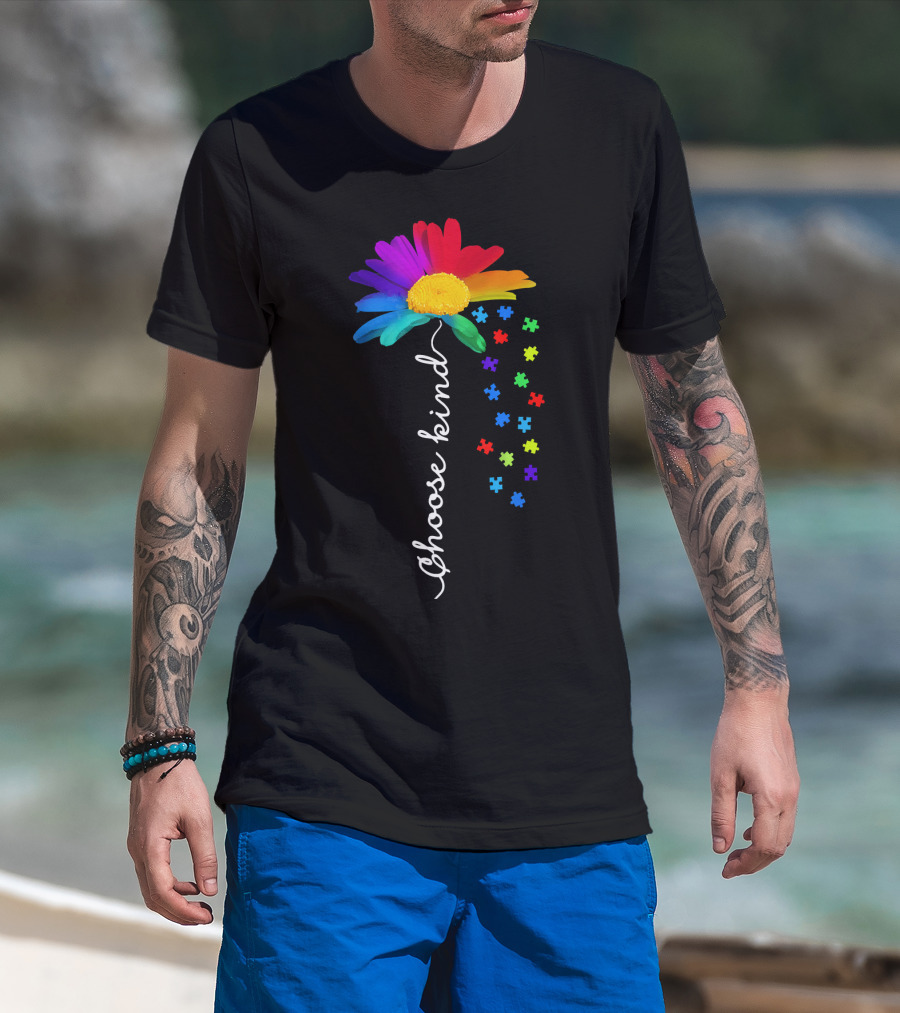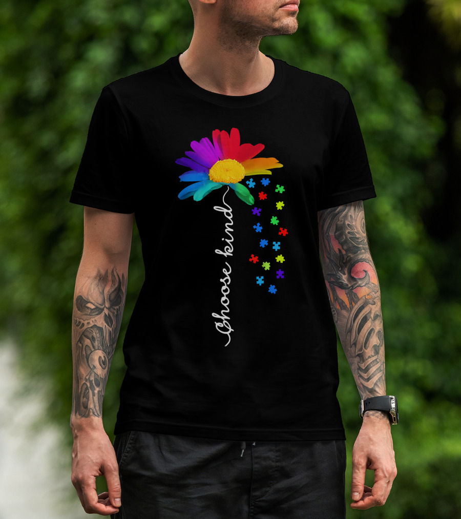 Choose Kind Autism Awareness Rainbow Daisy Puzzle Pieces T-Shirt