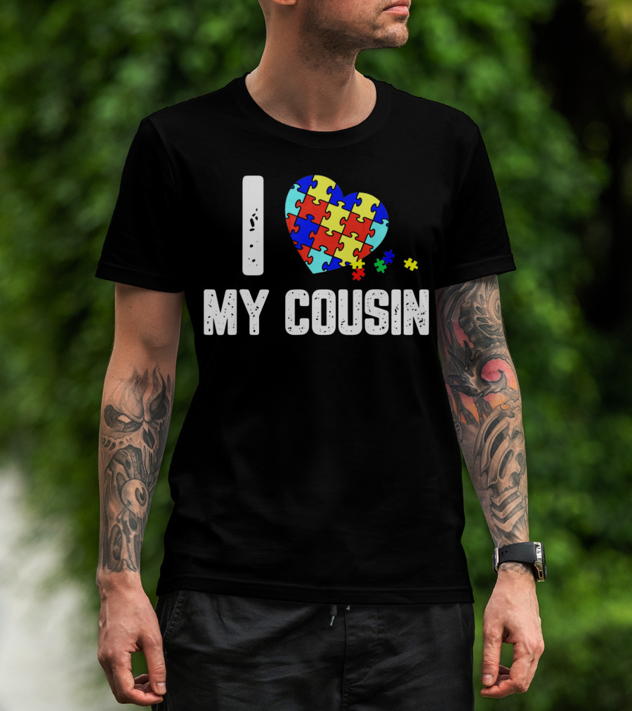 I Love My Cousin Heart Puzzle Autism Awareness T-Shirt