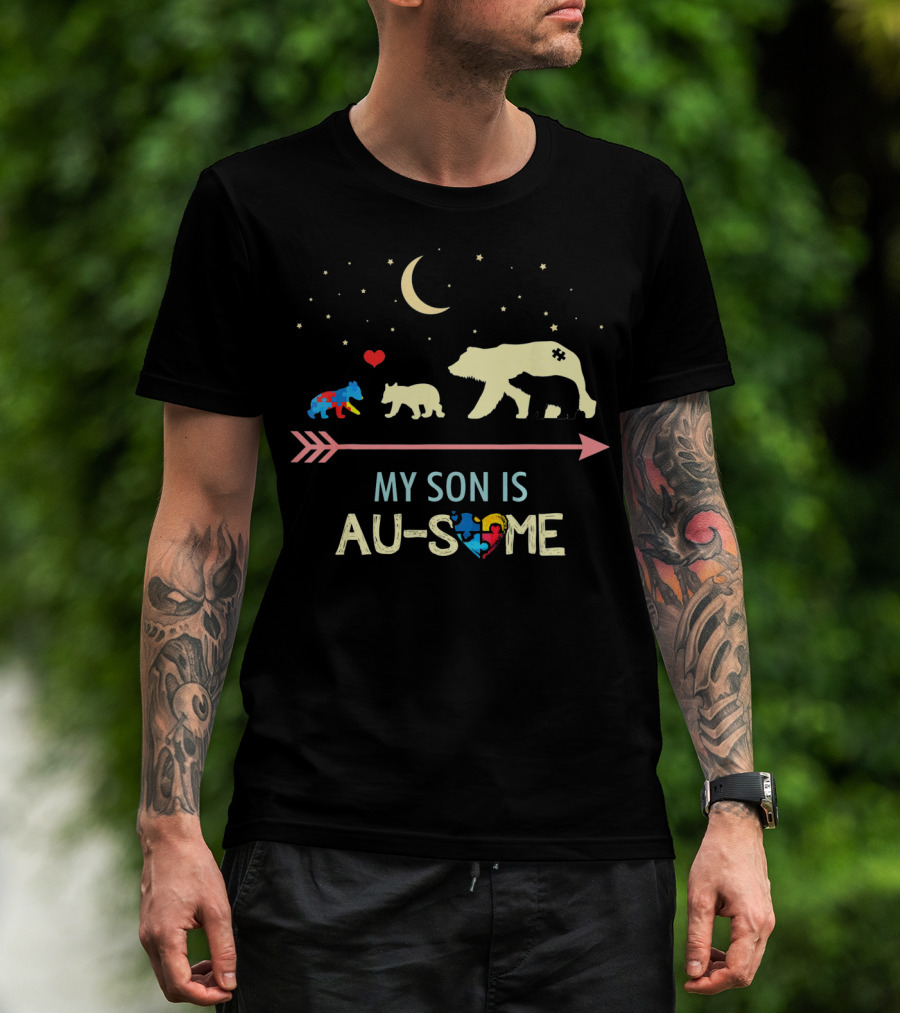Autism Awareness My Son Is Au-Some Mama Bear And Cubs With Stars And Moon T-Shirt