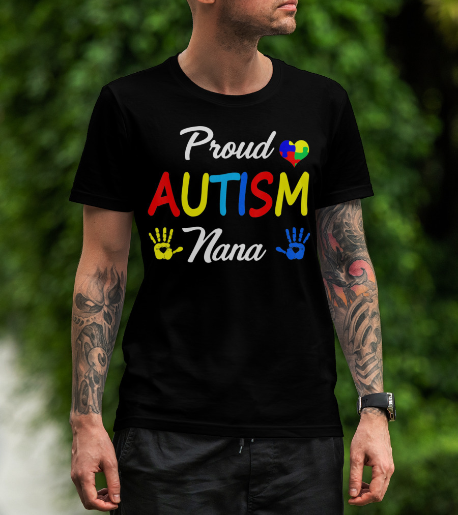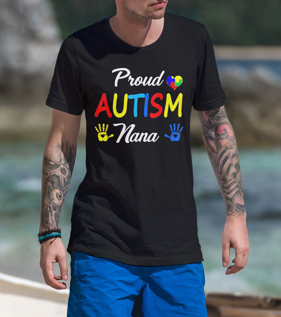 Proud Nana Autism Heart Puzzle Hands Awareness Family Match T-Shirt