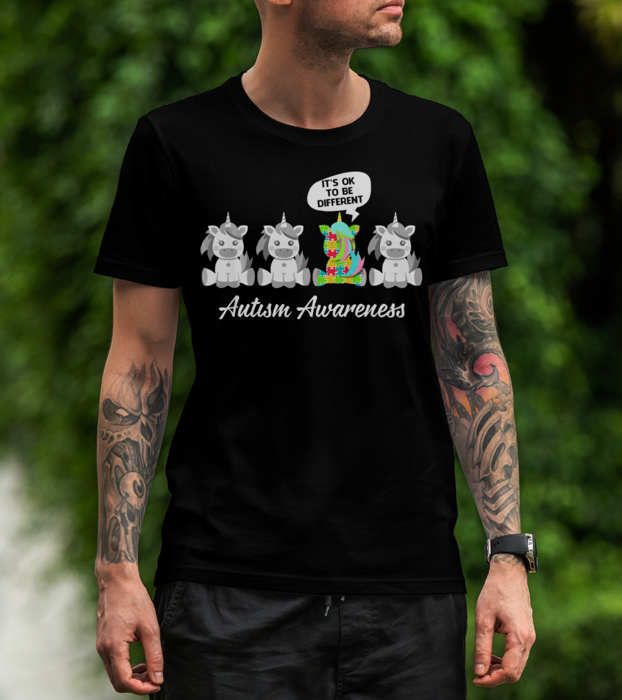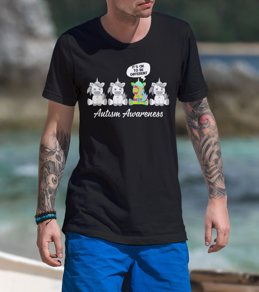 Autism Awareness Unicorn It's OK To Be Different With Puzzle Piece T-Shirt