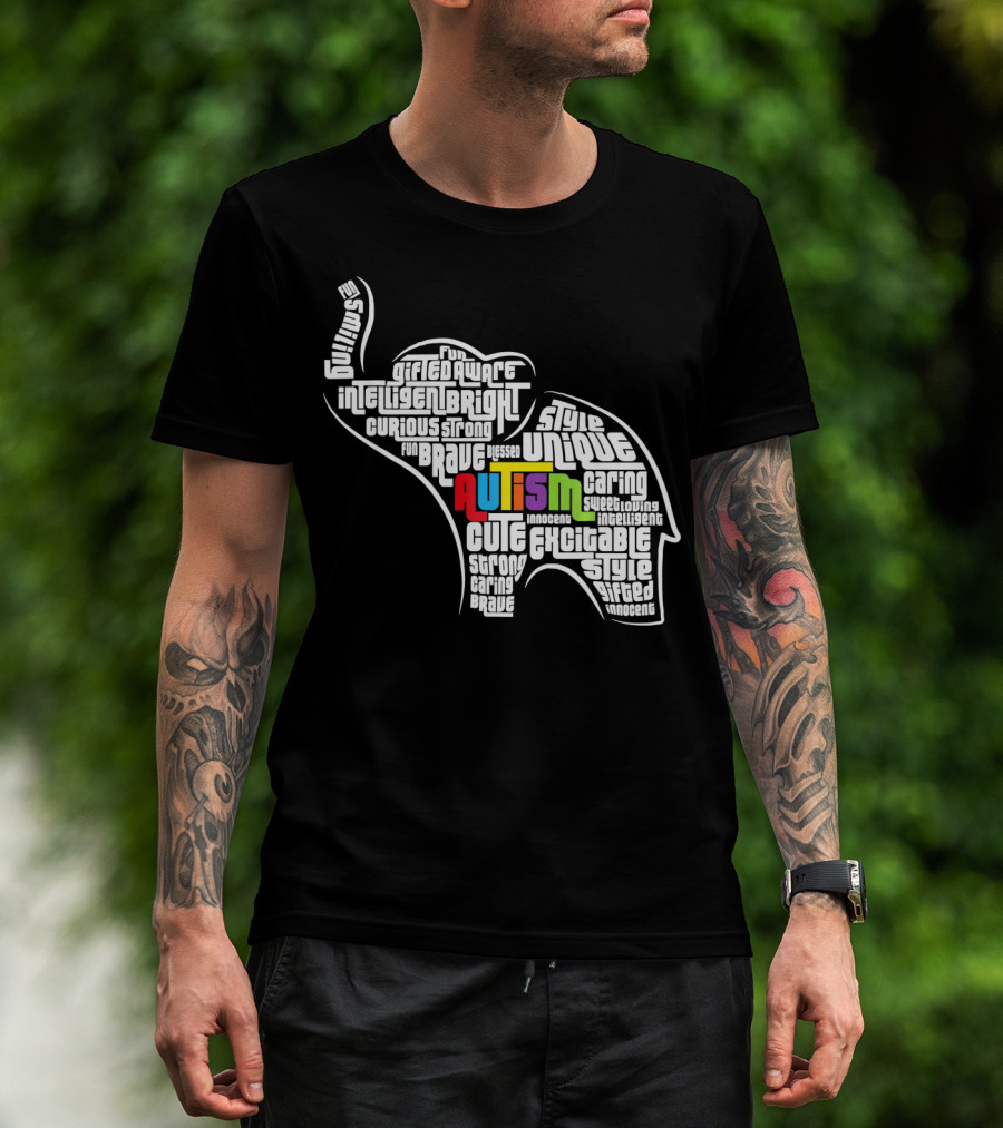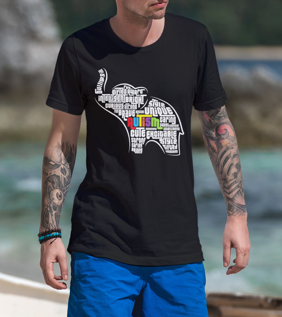 Autism Awareness Elephant Fun Intelligent Unique Excitable Gifted Bright Curious Strong Brave Cute Caring Innocent T-Shirt