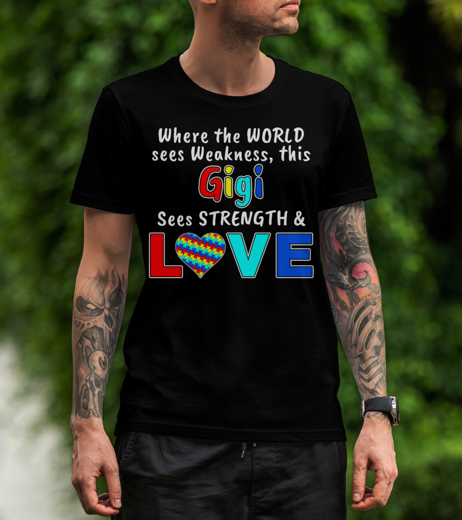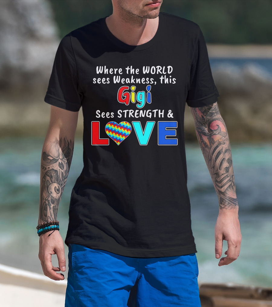 Where The World Sees Weakness This Gigi Sees Strength And Love Autism Awareness T-Shirt