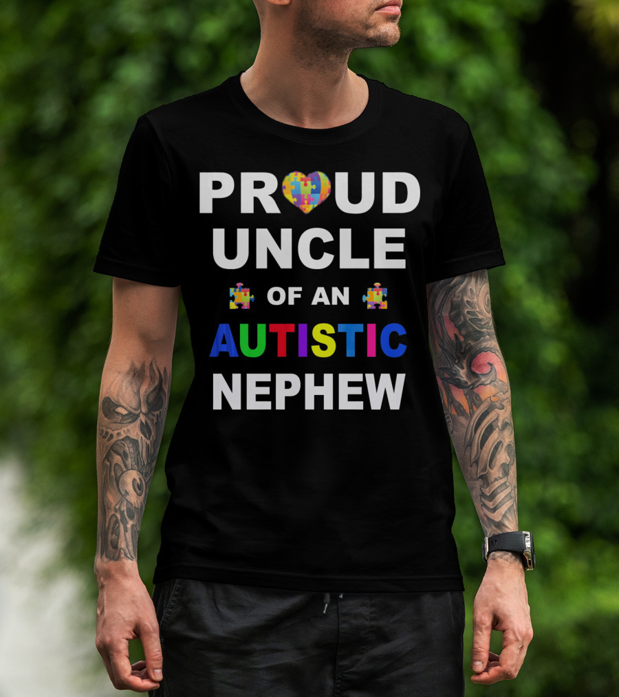 Proud Uncle Of An Autistic Nephew With Heart And Puzzle Pieces T-Shirt