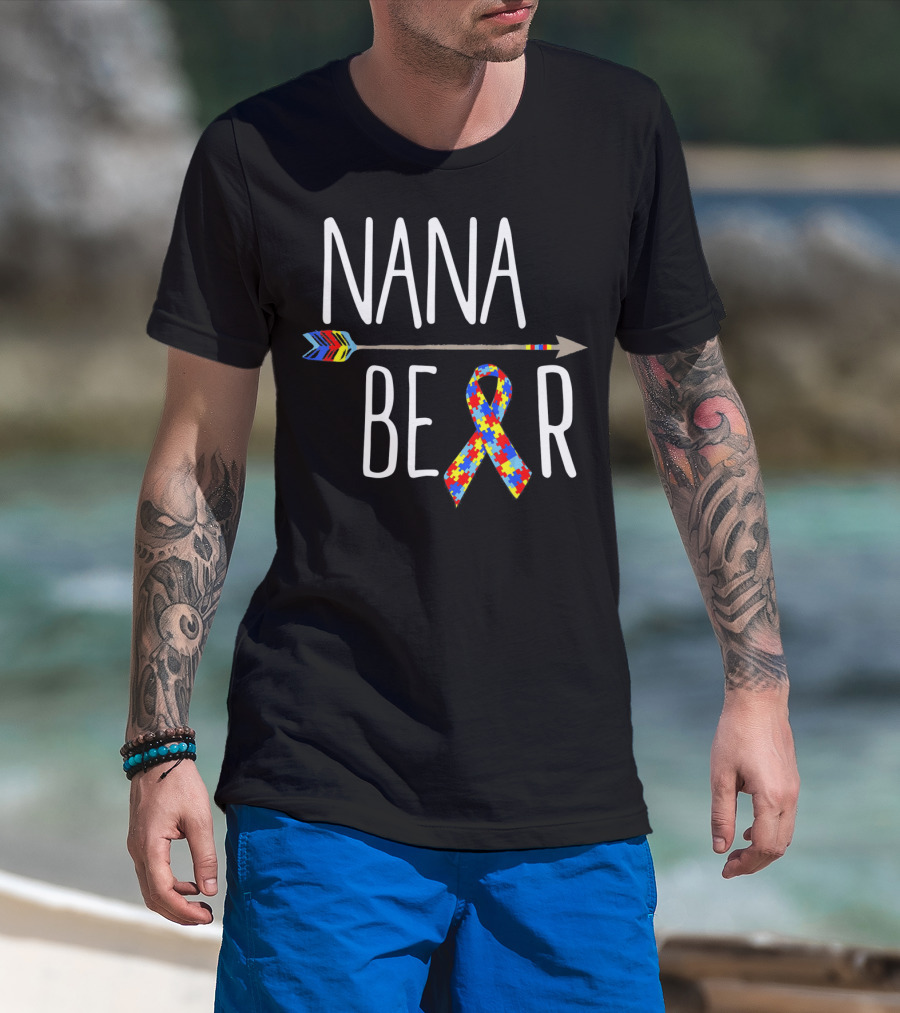 Nana Bear Autism Awareness Puzzle Ribbon Arrow T-Shirt