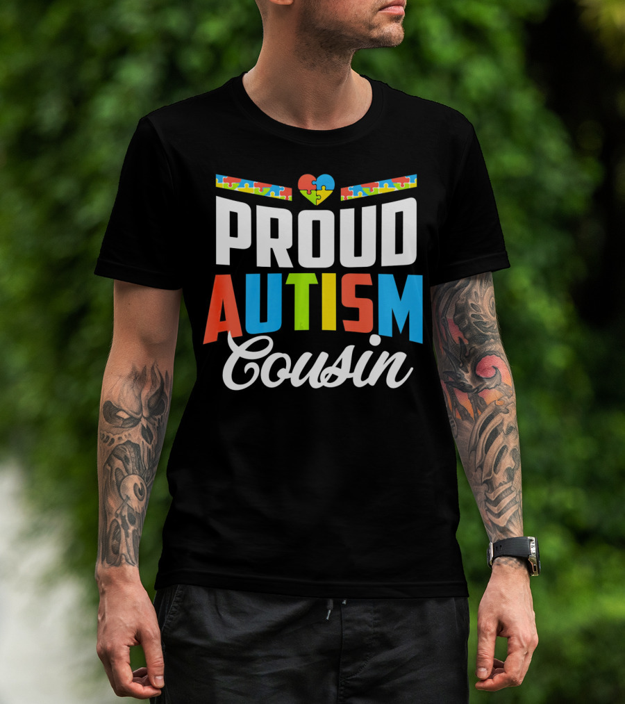 Proud Autism Cousin Heart Puzzle Awareness Support T-Shirt