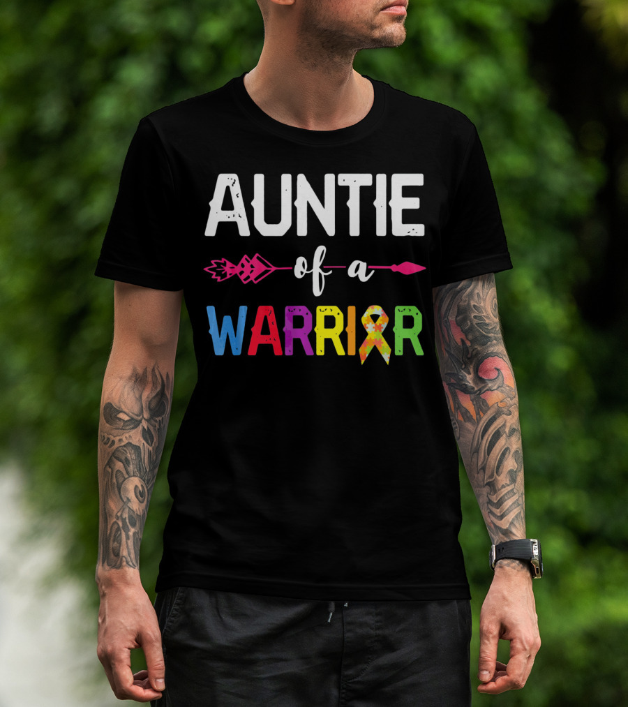 Auntie Of A Warrior Autism Awareness Colorful Puzzle T-Shirt