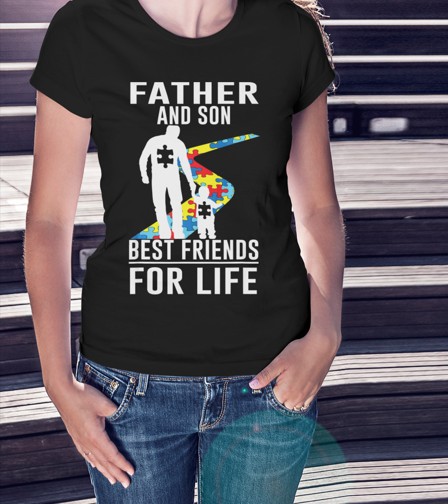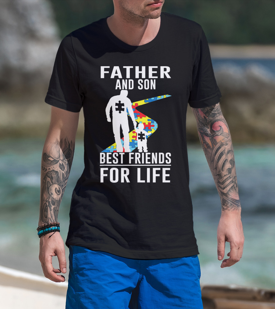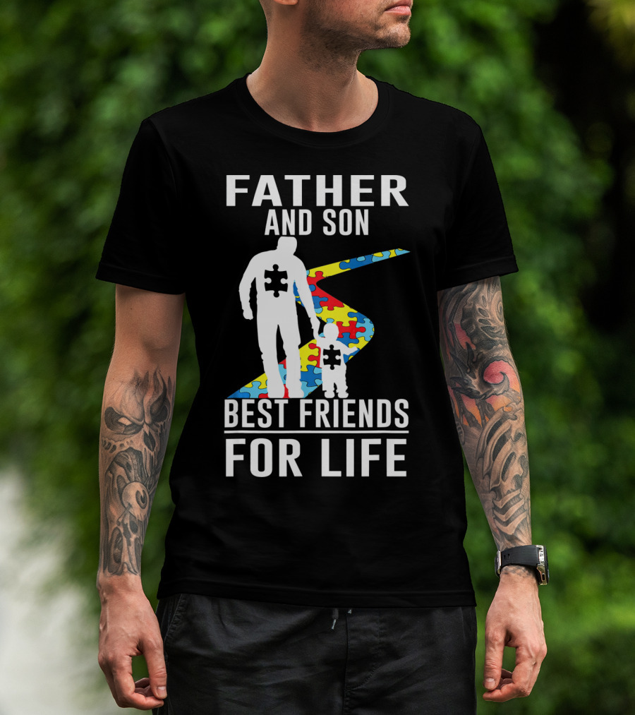 Father And Son Best Friends For Life Puzzle Piece Autism Awareness T-Shirt