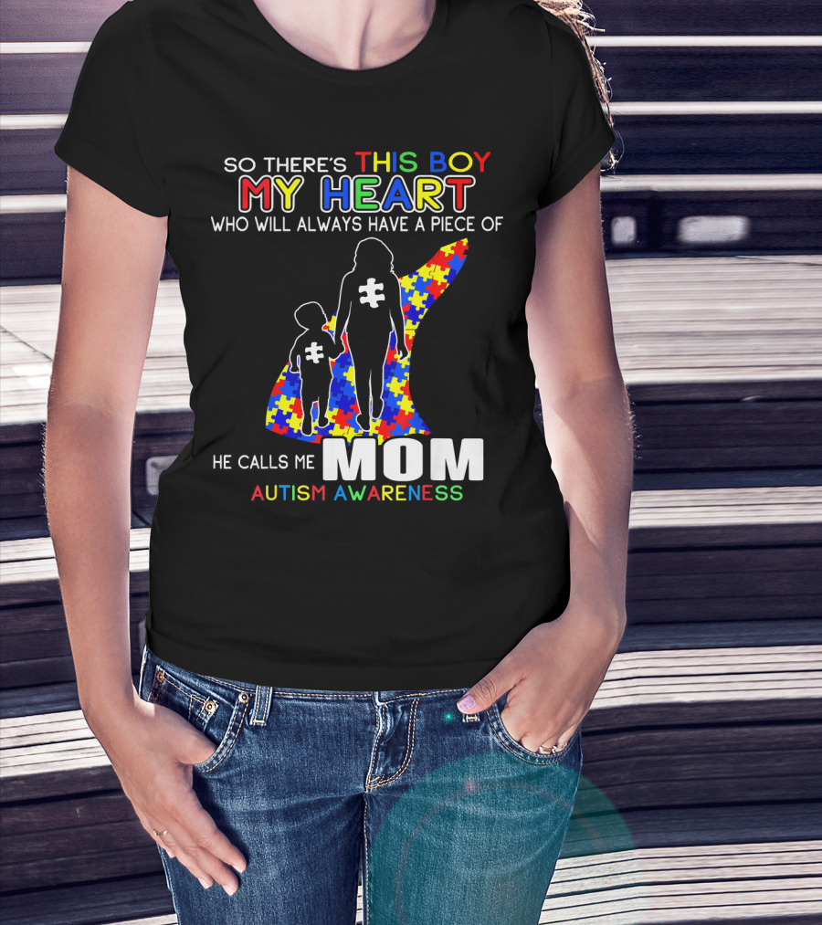 So There's This Boy My Heart He Calls Me Mom Autism Awareness T-Shirt