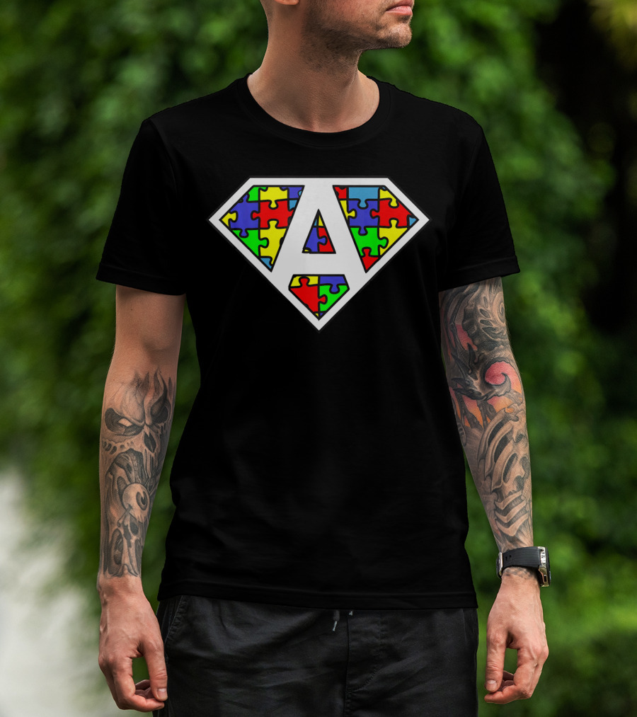 Autism Awareness Superhero Puzzle Shield Emblem T-Shirt