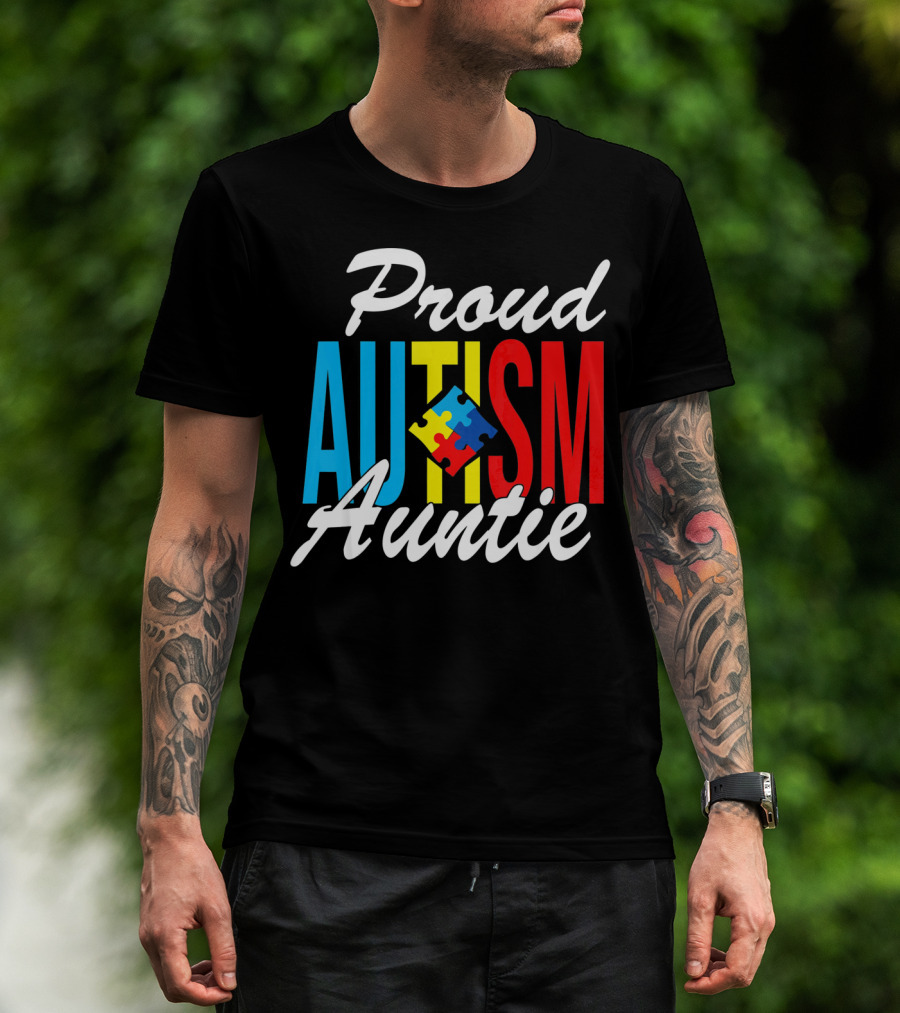 Proud Autism Auntie Puzzle Piece Awareness Support T-Shirt