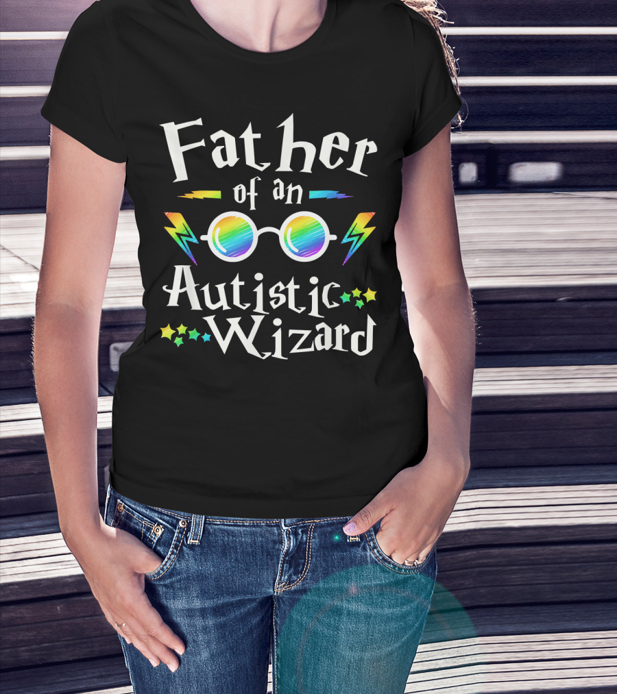 Father Of An Autistic Wizard Colorful Glasses And Lightning Bolts T-Shirt