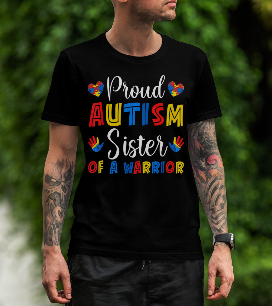 The Proud Autism Sister of a Warrior T-shirt is designed for everyday wear and a consistent fit. Fabric is pre-shrunk ring-spun cotton with durable stitching. See the size chart below for exact measurements.