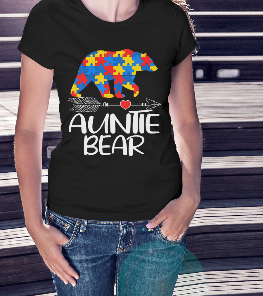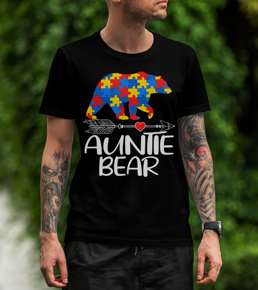 Autism Awareness Auntie Bear Puzzle Heart Arrow T-Shirt
