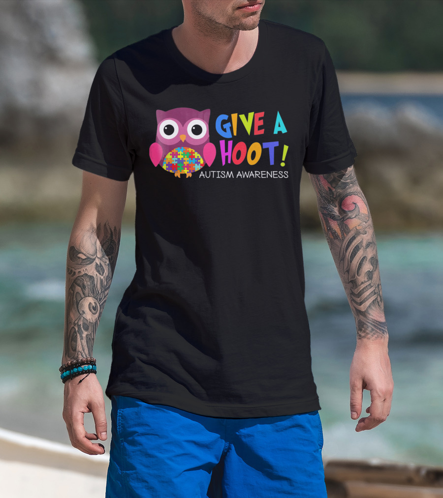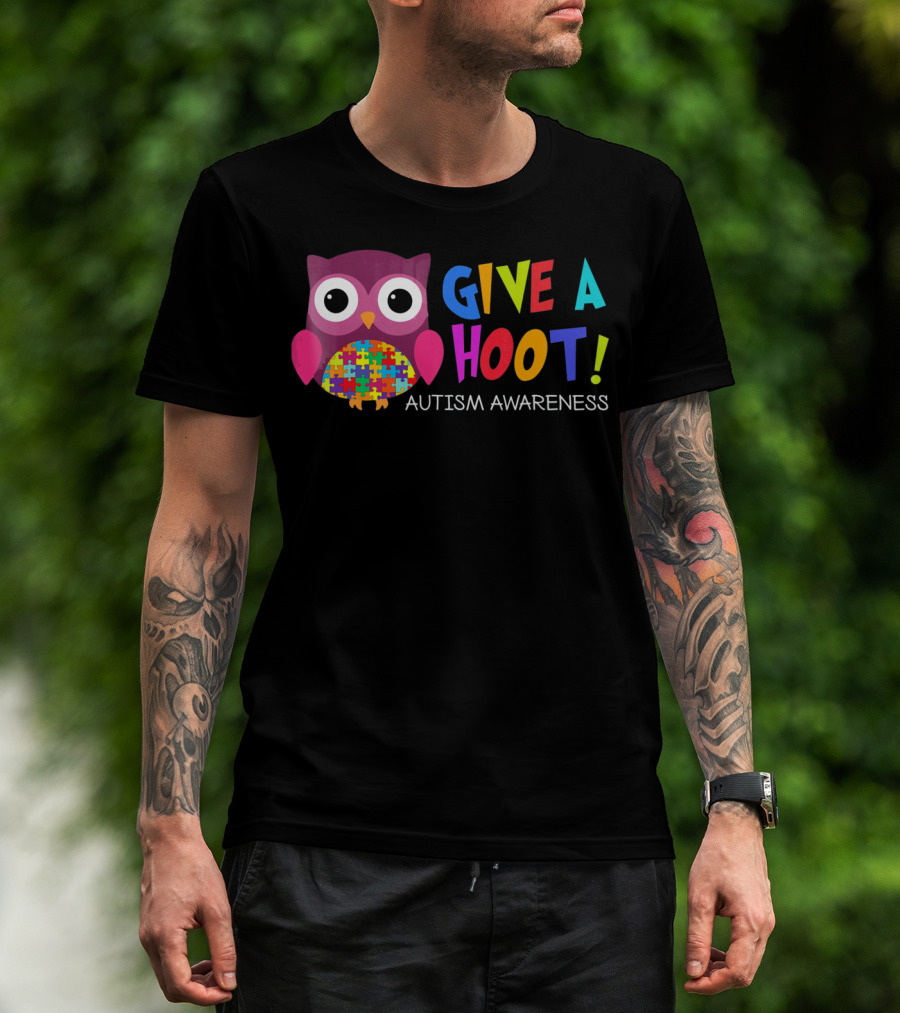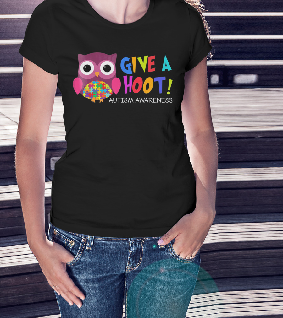 Give A Hoot Autism Awareness Owl Puzzle Piece T-Shirt