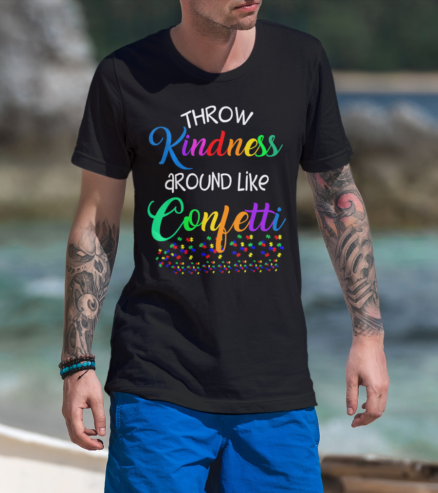 The Throw Kindness Around Like Confetti Rainbow Stars T-shirt is designed for everyday wear and a consistent fit. Fabric is pre-shrunk ring-spun cotton with durable stitching. See the size chart below for exact measurements.