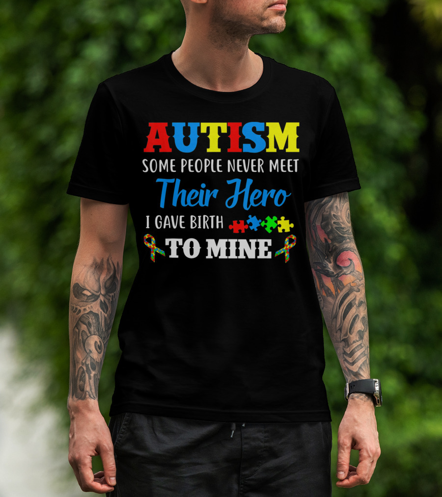 Autism Some People Never Meet Their Hero I Gave Birth To Mine T-Shirt