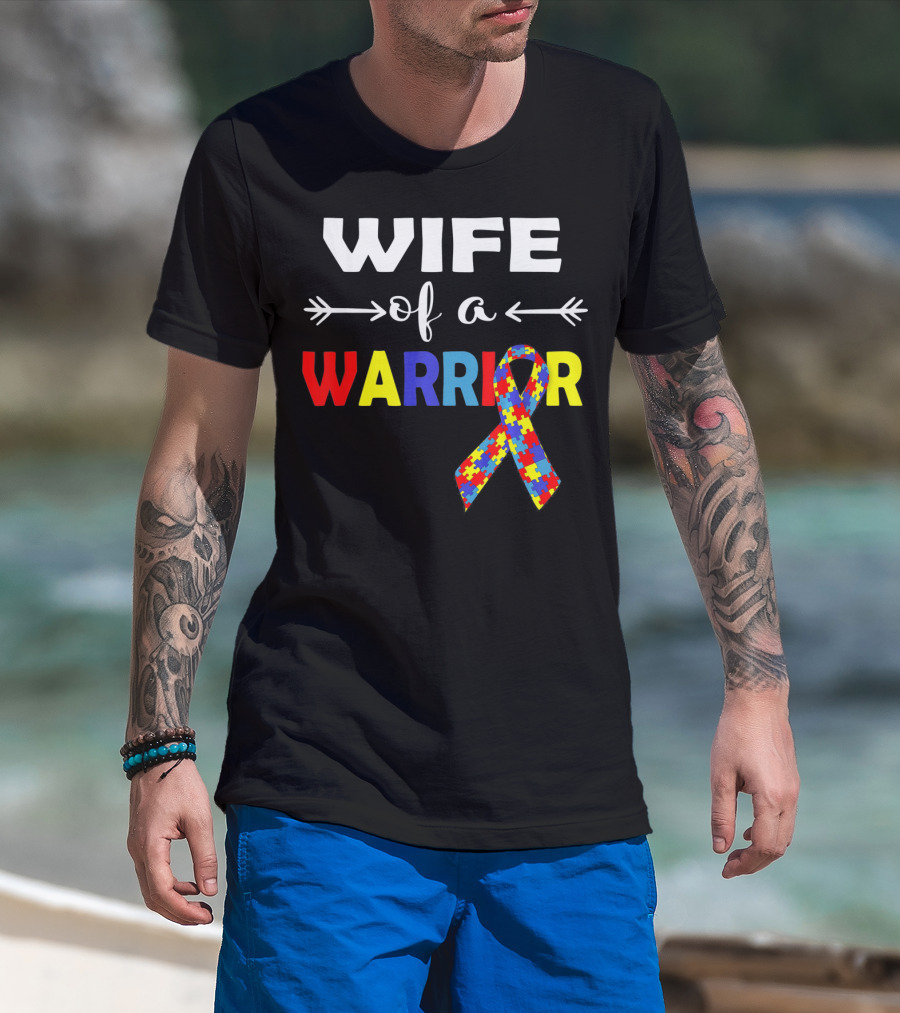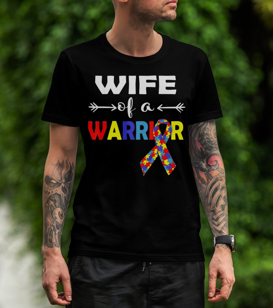 Wife Of A Warrior Autism Awareness Ribbon Puzzle T-Shirt