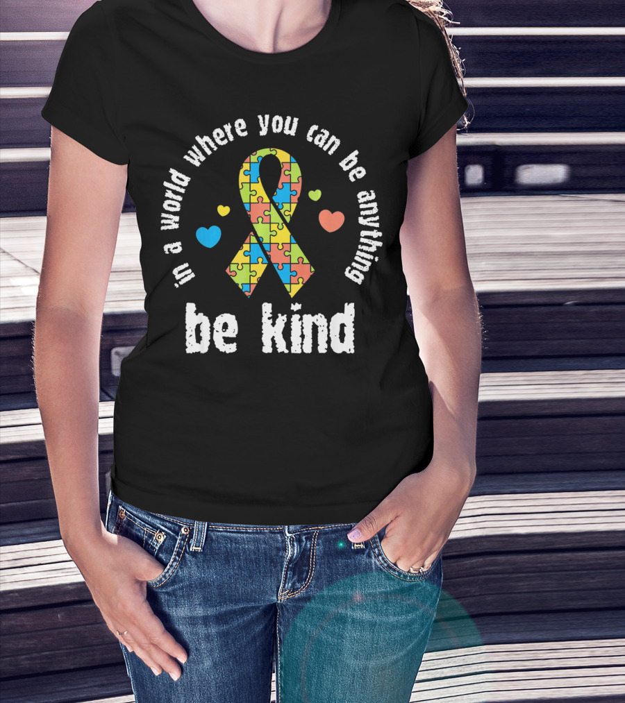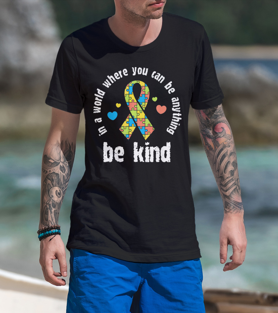 In A World Where You Can Be Anything Be Kind Puzzle Ribbon Autism Awareness T-Shirt
