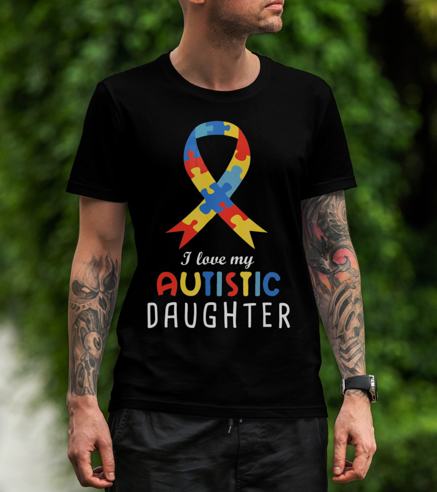 I Love My Autistic Daughter Autism Awareness Puzzle T-Shirt