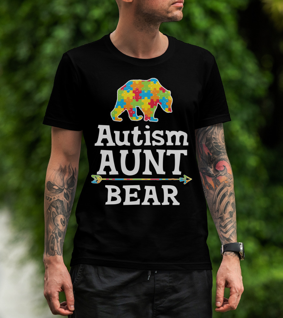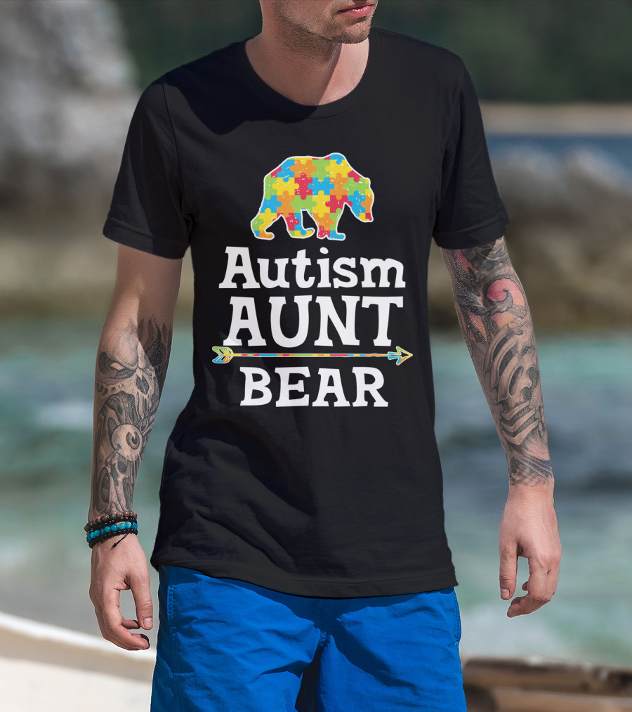 Autism Awareness Aunt Bear Puzzle Pattern Arrow T-Shirt
