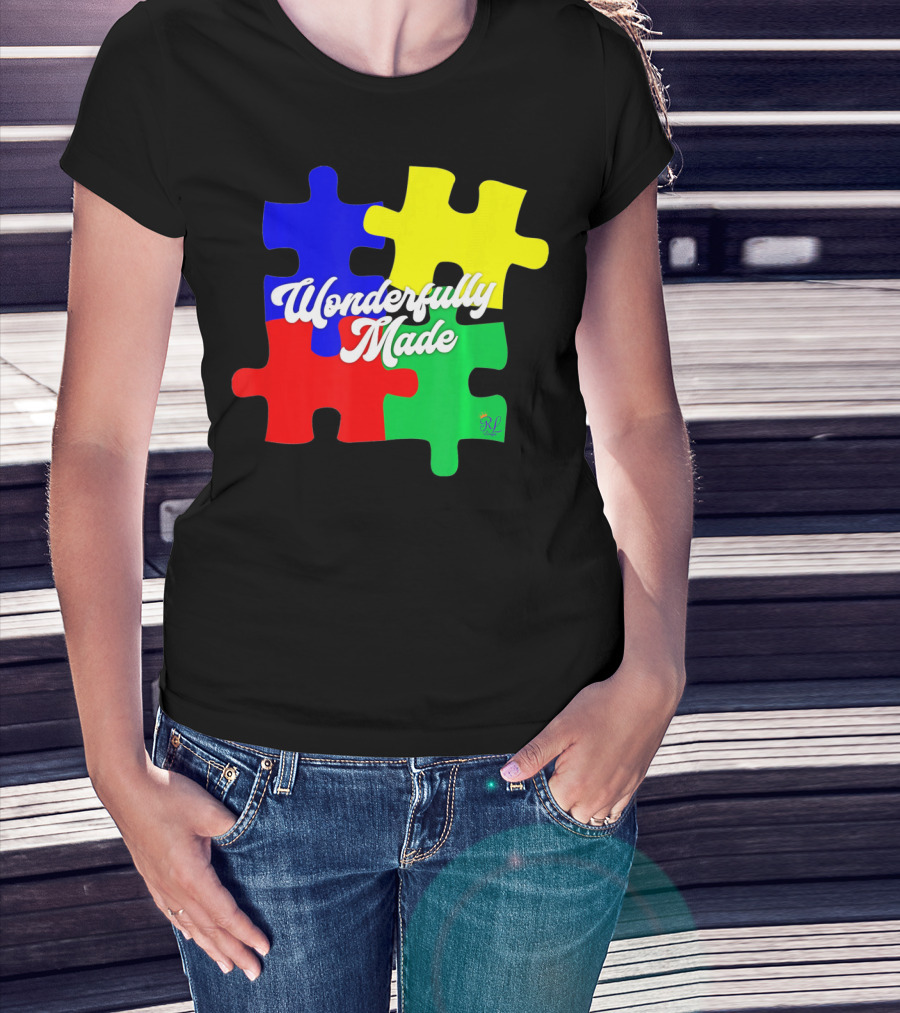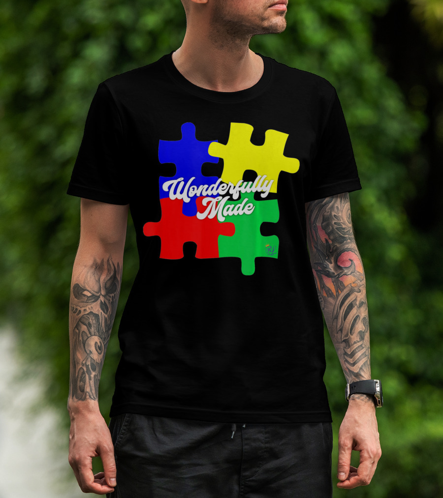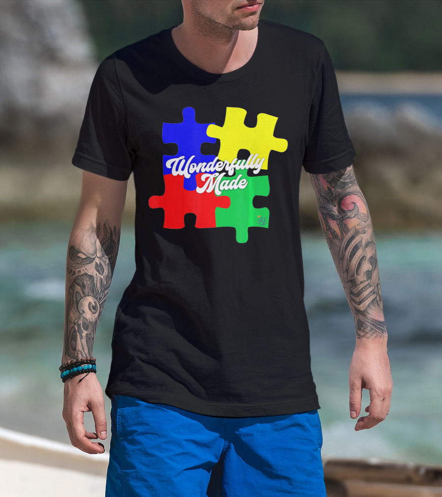 Wonderfully Made Autism Awareness Puzzle Pieces T-Shirt