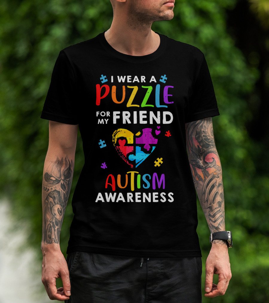 I Wear A Puzzle For My Friend Autism Awareness T-Shirt