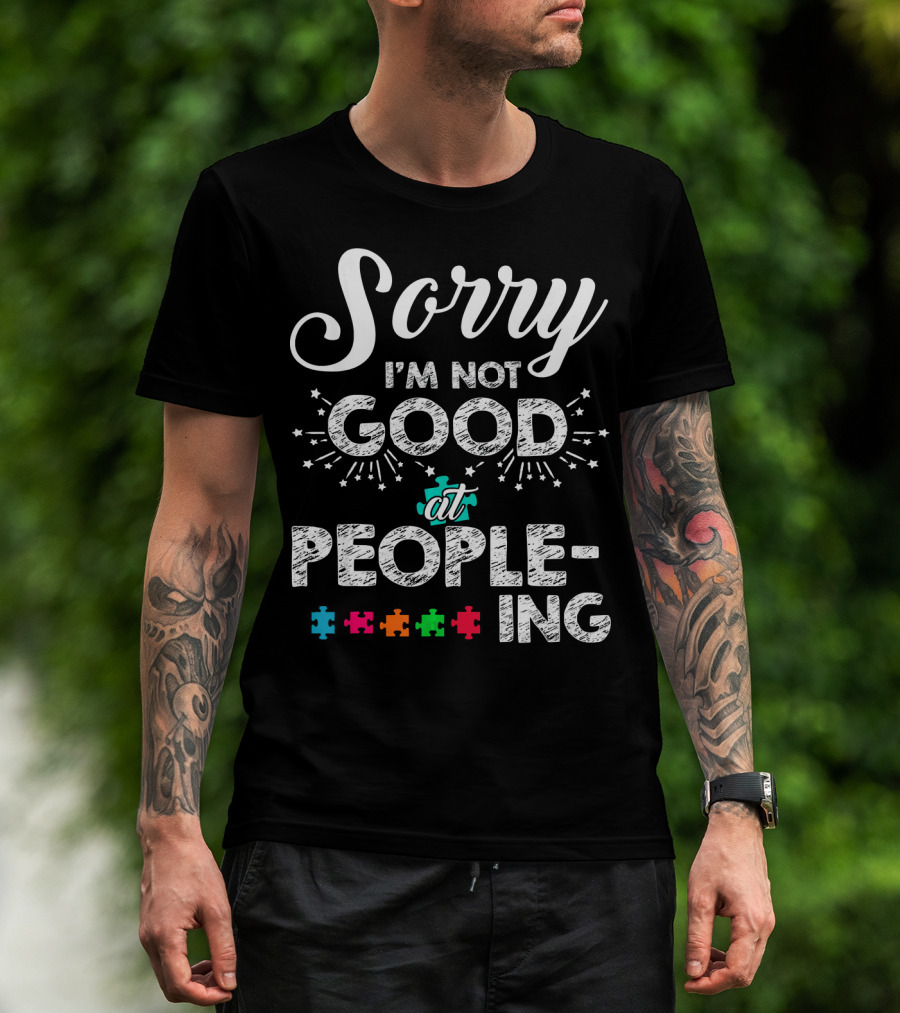 Sorry I'm Not Good At Peopling Autism Puzzle Pieces T-Shirt