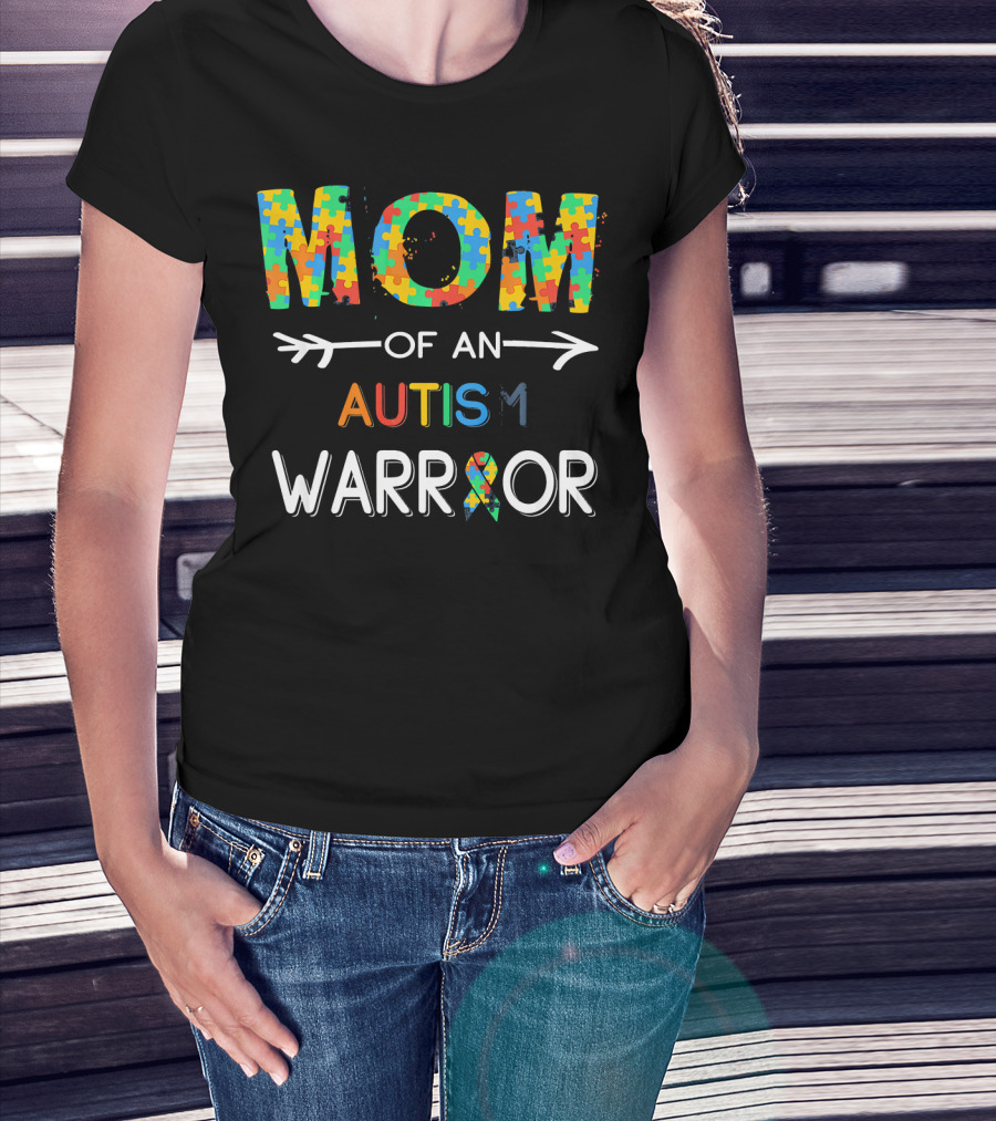 Mom Of An Autism Warrior Autism Awareness Puzzle T-Shirt