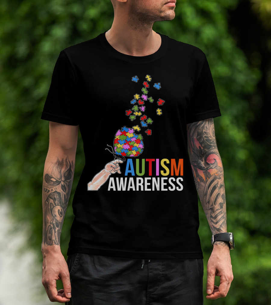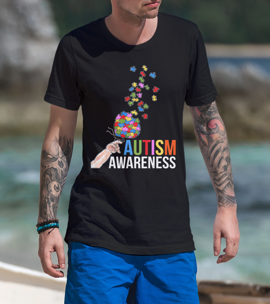 Autism Awareness Butterfly Puzzle Pieces Balloon T-Shirt