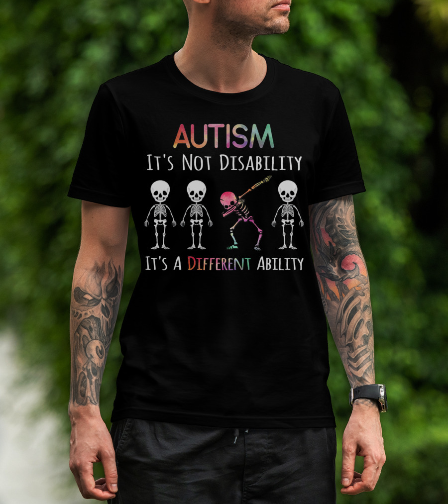 Autism Awareness Dabbing Skeleton It's Not Disability It's A Different Ability T-Shirt