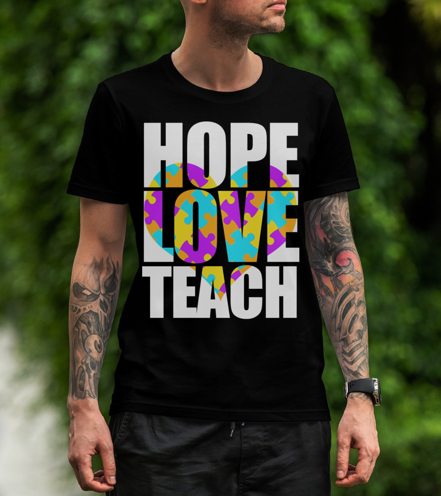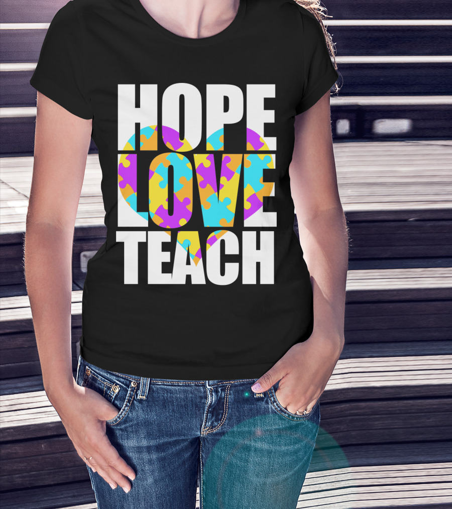 Hope Love Teach Cute Autism Awareness Puzzle Heart T-Shirt