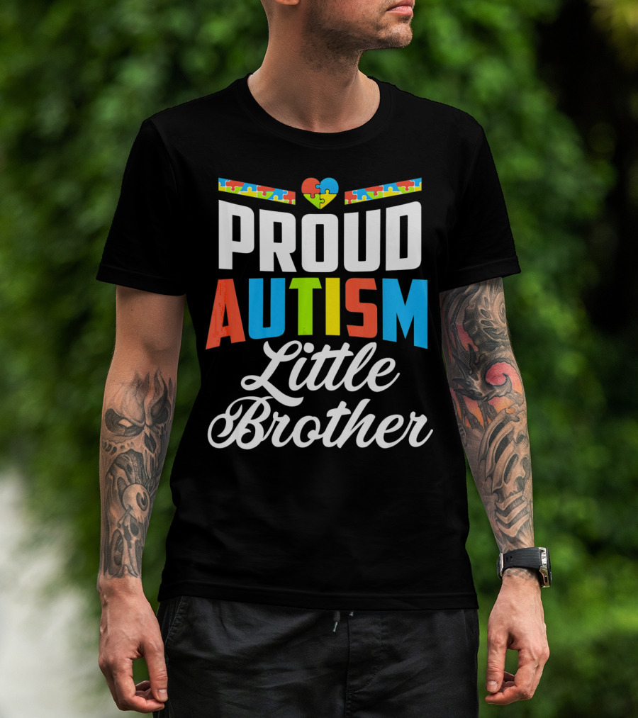 Proud Autism Little Brother Puzzle Piece Heart Awareness T-Shirt